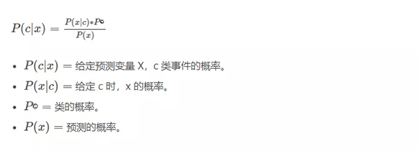 4. 朴素贝叶斯朴素贝叶斯(Naive Bayes)是基于贝叶斯定理。它测量每个类的概率,每个类的条件概率给出 x 的值。这个算法用于分类问题,得到一个二进制“是 / 非”的结果。看看下面的方程式。